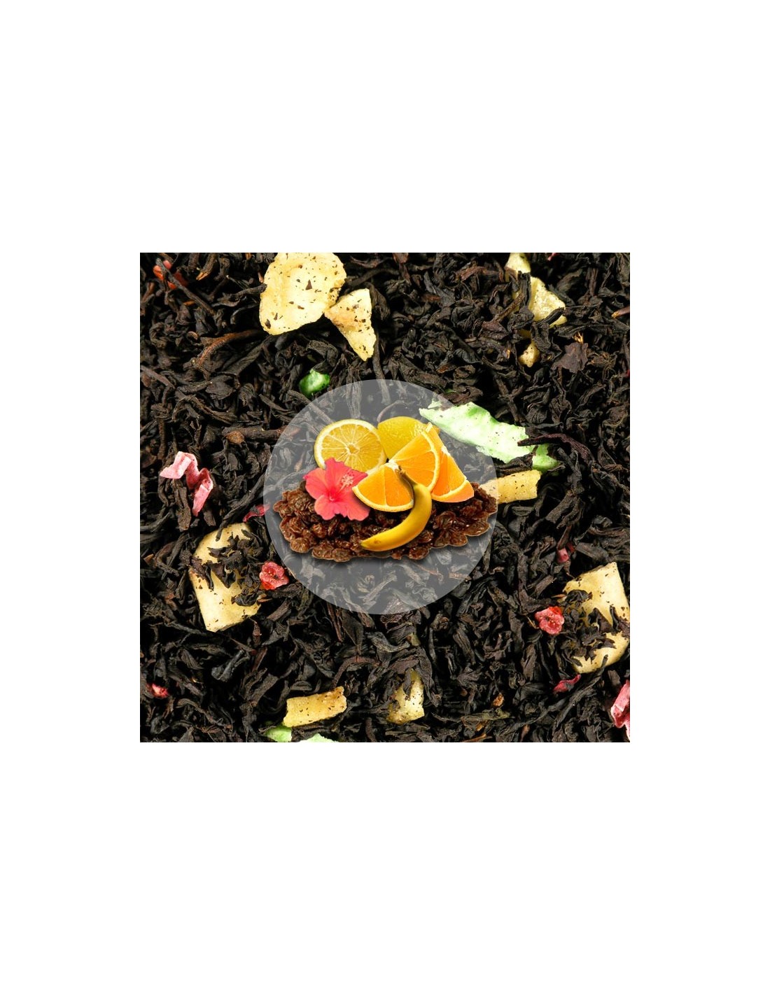 Herbata Cytrusowa to mieszanka czarnych herbat z dodatkiem: rodzynek, banana, hibiskusa, cytryny kandyzowanej.