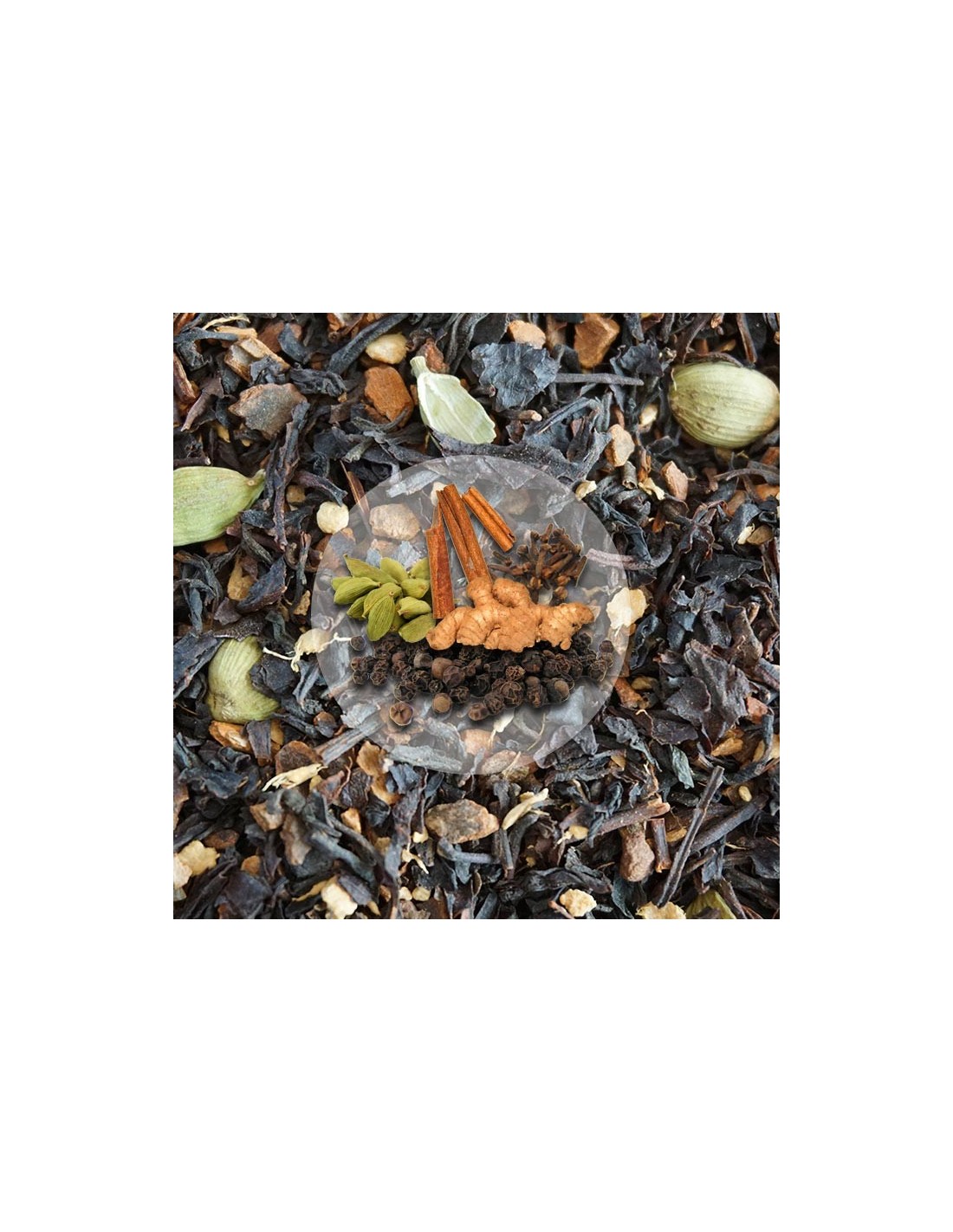Chai Masala to stworzona według indyjskiej receptury prawdziwie orientalna mieszanka herbat i przypraw takich jak:herbata czarna, imbir, cynamon, pieprz czarny, kardamon, goździki. Zalecane jest picie jej z dodatkiem niewielkiej ilości mleka, a nawet odrobiny masła.