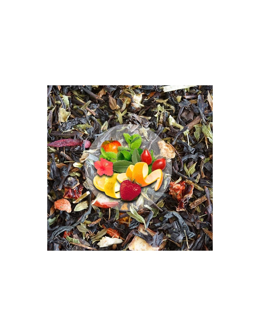 Teina zawarta w herbacie pomaga nam w łagodny sposób przezwyciężać zmęczenie i wzmacniać koncentrację. Czas na Relaks to czarna herbata aromatyzowana z dodatkiem: melisy, hibiskusa, jabłka, skórki róży, skórki cytryny, truskawki i skórki pomarańczy.