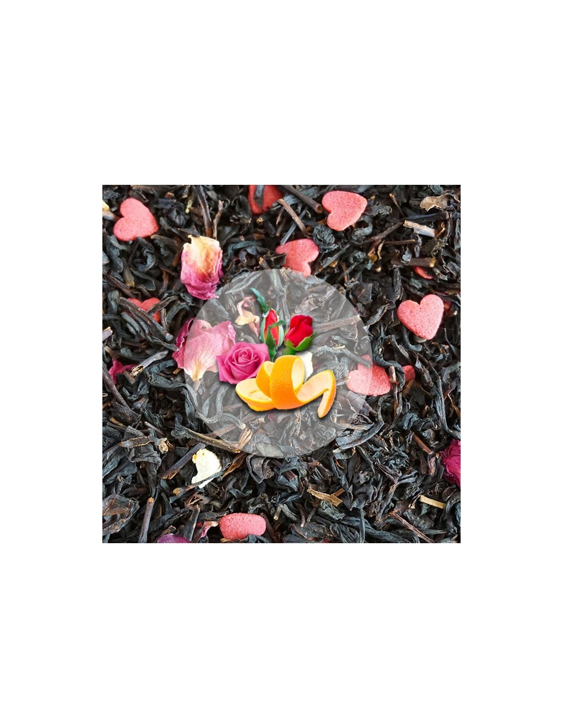 Herbata Czarna Świątynia Miłości to smaczna i aromatyczna mieszanka z rodzynkami, skórką róży, pomarańczą, płatkami i pączkami róży, oraz cukrowymi serduszkami.
