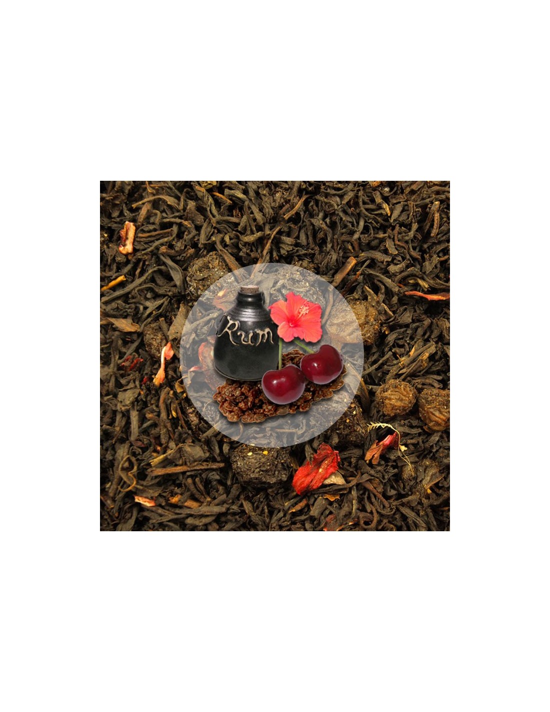 Herbata Rum z Wiśnią jest to mieszanka herbat dająca żywy, bogaty napar o miedzianej barwie i świeżym aromacie i ożywczym smaku z dodatkiem: