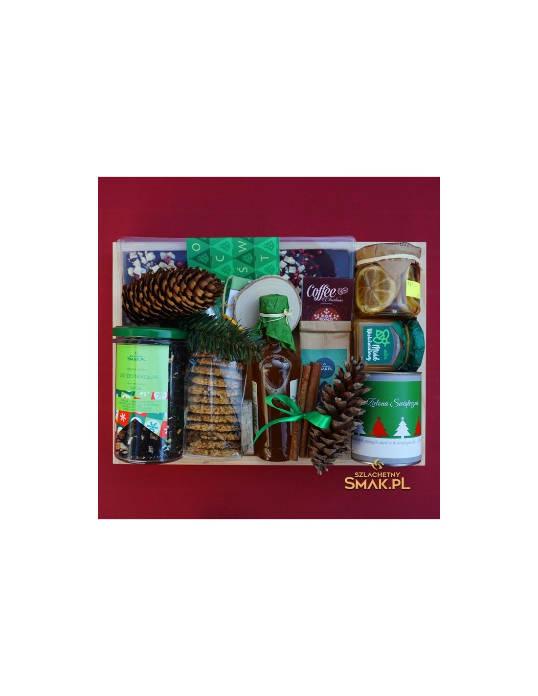 Już nie musisz się głowić co podarować swoim kontrahentom. Zielona Choinka to gotowy zestaw aromatycznych prezentów. W sam raz na święta. Każdy kto otrzyma taki upominek będzie zachwycony. Przy większych zamówieniach oczywiście inna cena, oraz możliwość personalizacji wg Państwa projektów. Zestaw ułożony na drewnianej tacy 25cm x 35cm zawiera: