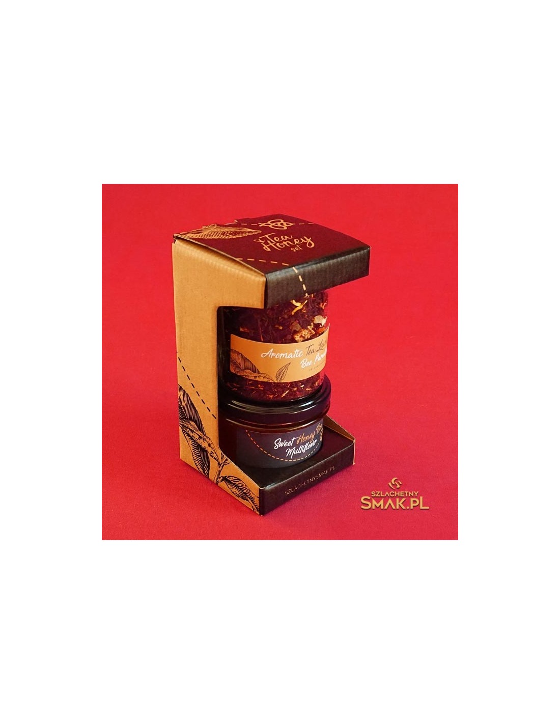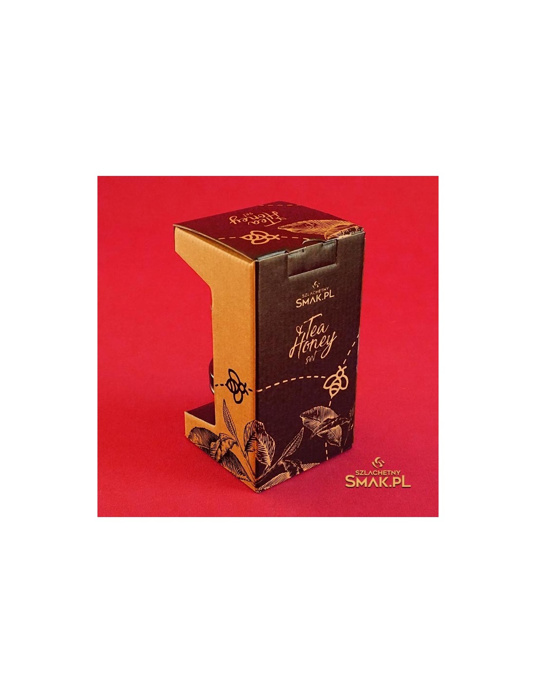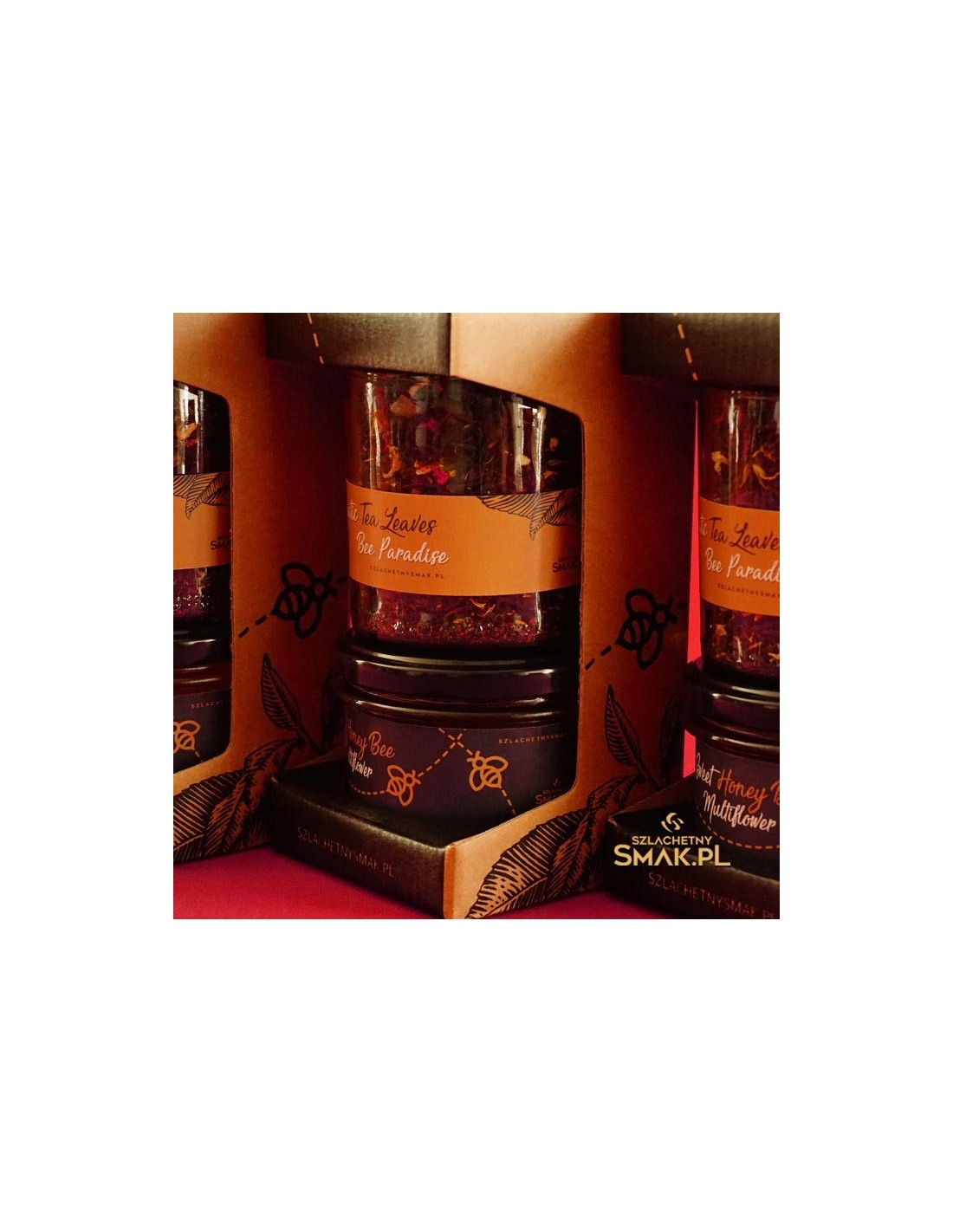 Herbata z Miodem to gotowy zestaw prezentowy zapakowany w tekturowe opakowanie. Wewnątrz słoik czarnej herbaty Pszczeli Raj, oraz słoik prawdziwego polskiego miodu wielokwiatowego, (krystalizacja miodu jest prawidłowością). Przy większych zamówieniach niższa cena, a także możliwość personalizowanego opakowania i etykiet.