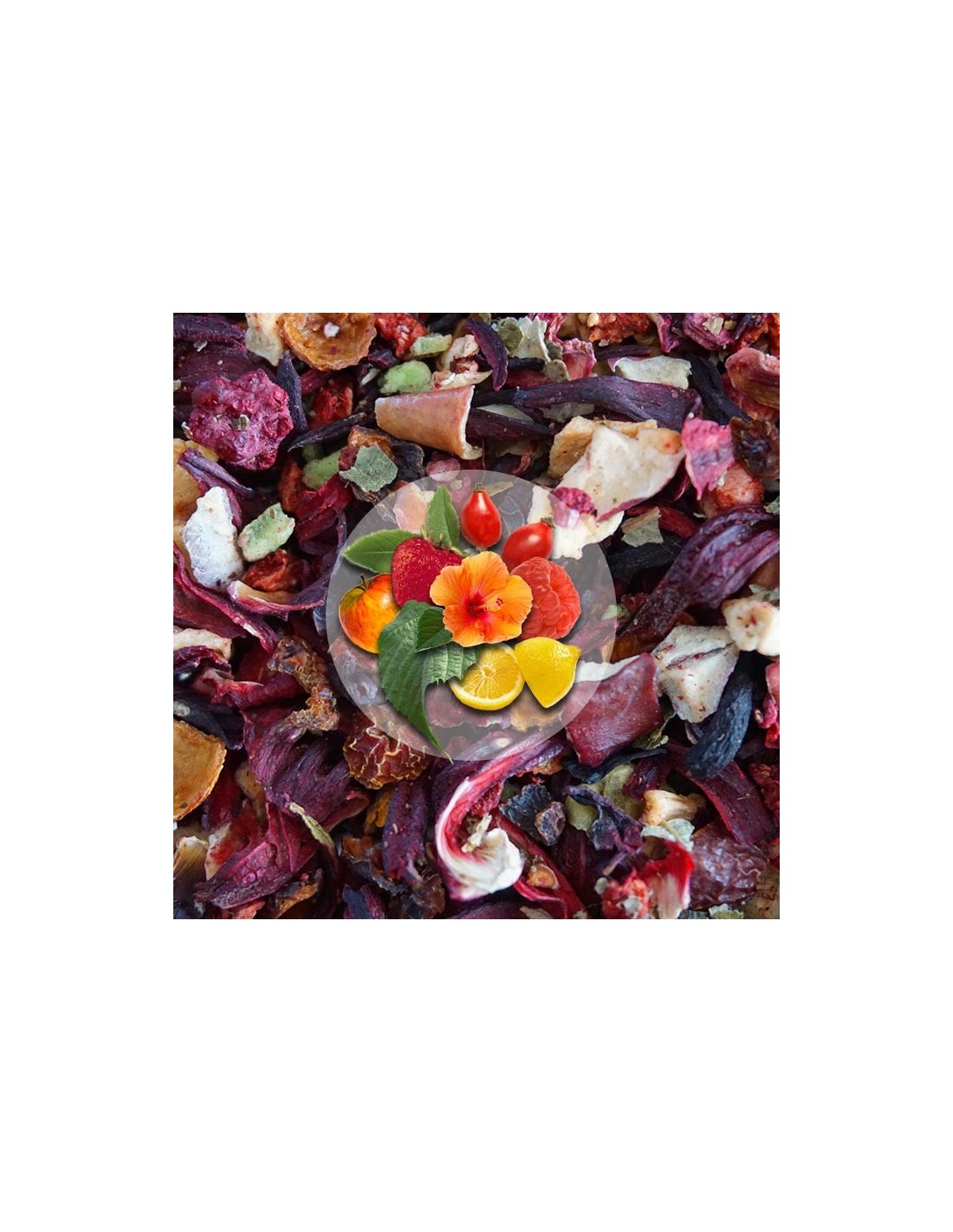 Herbata Owocowa Ogród Miłości to mega mieszanka: jabłko, truskawka, kiwi, owoce i liście maliny, skórka róży.