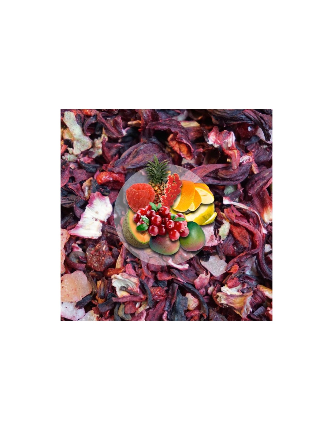 Owocowa herbata Bajkowy Świat w składzie swoim posiada: żurawinę, skórkę cytryny, pomarańczy, ananasa, mango, melona, czerwoną porzeczkę i malinę.