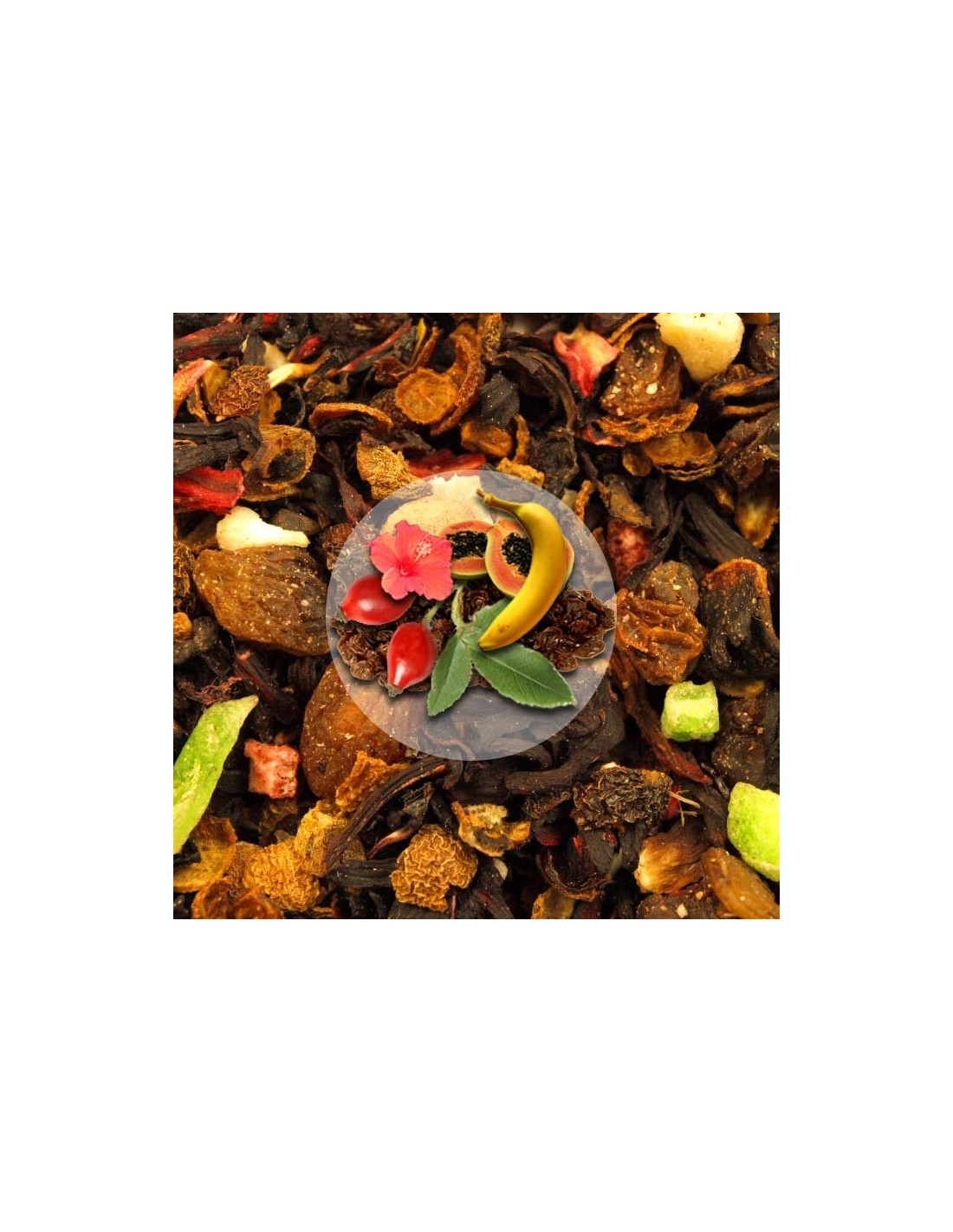 Herbatka Owocowa najlepiej smakuje podczas południowej przerwy w pracy. Jej aromat pobudza i dodaje energii a smak pozwala zrelaksować się i odpocząć. Wśród składników tej herbaty owocowej są:hibiskus, rodzynki, dzika róża, banan i owoce papaja.