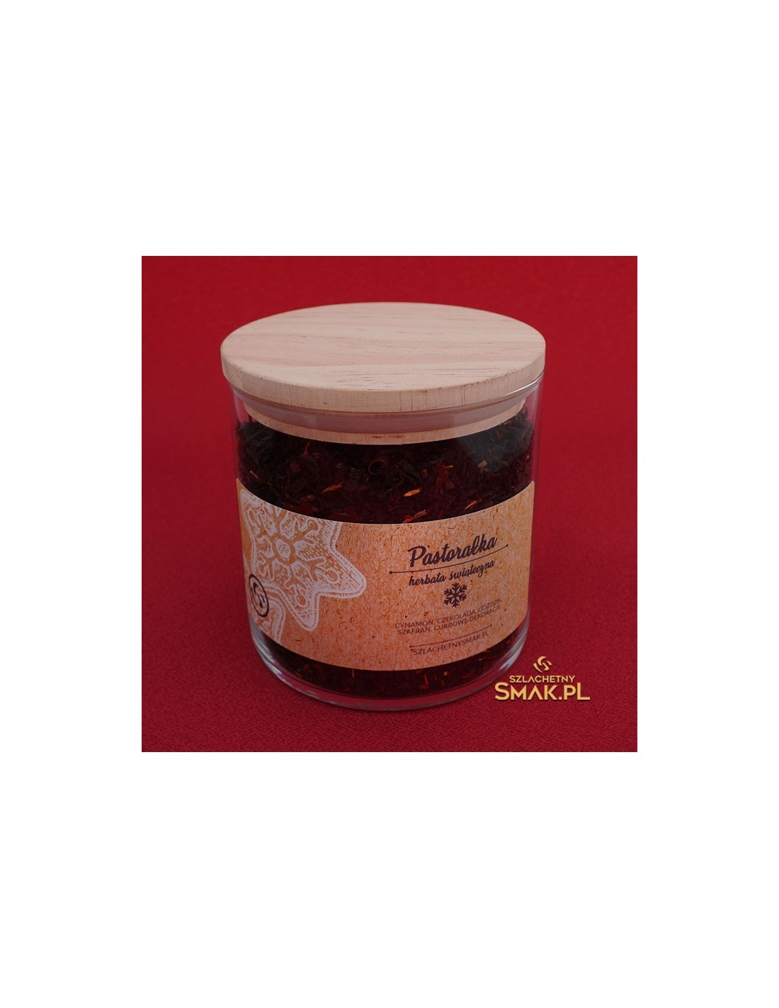 Pastorałka to jedna z czarnych herbat z serii - Przytulne Święta w eleganckim szklanym opakowaniu z drewnianym wieczkiem. Aromat świąt gwarantują takie dodatki jak cynamon, goździk, szafran, czekolada. Dopełnieniem są dekoracje cukrowe.