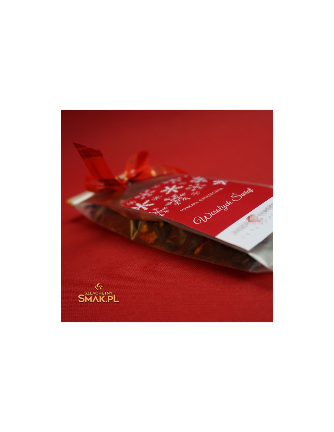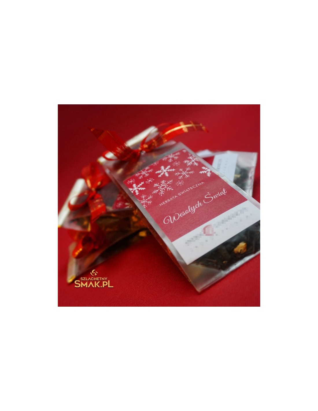 Bardzo popularna wśród Klientów, niedroga saszetka z niewielką ilością aromatycznej herbaty jako upominek świąteczny. Dodatkową ozdobą jest kokardka.