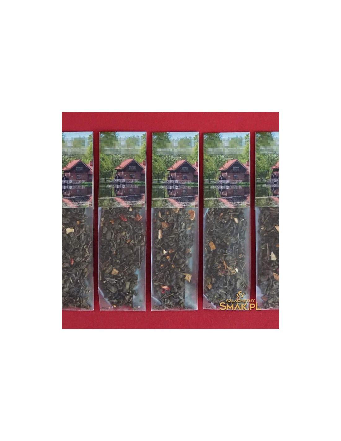 Realizacja zamówienia dla Klienta - saszetki z herbatą zieloną. Szata graficzna z dostarczonych fotografii.