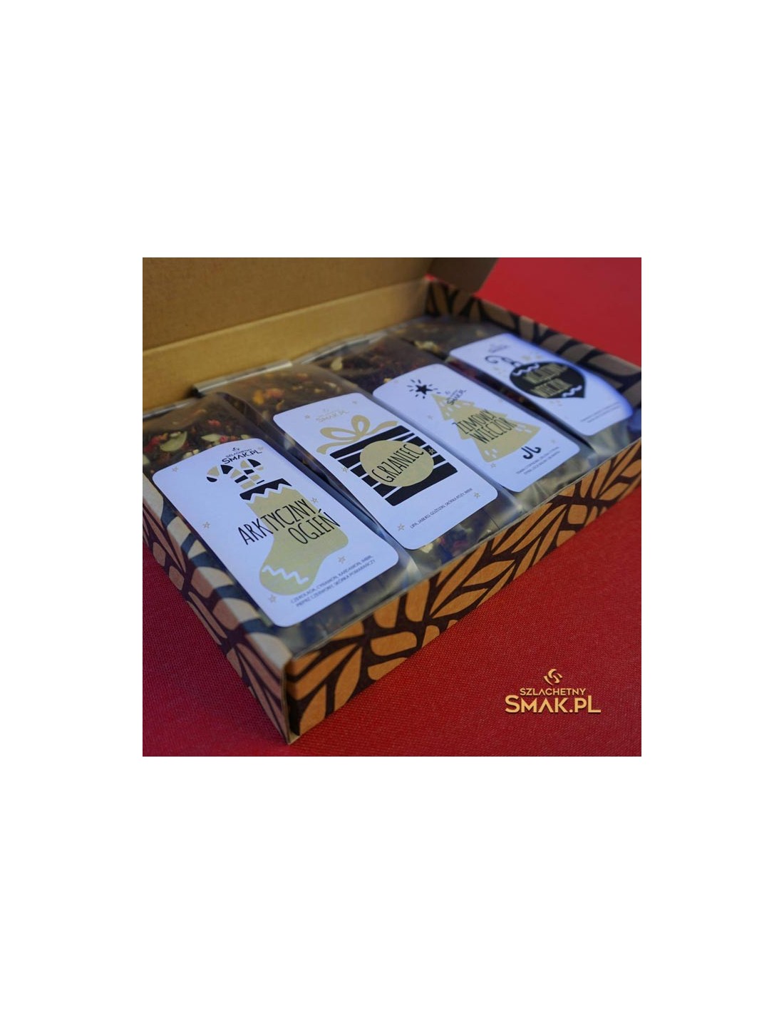 W zestawie są cztery herbaty czarne, wszystkie z dodatkami.