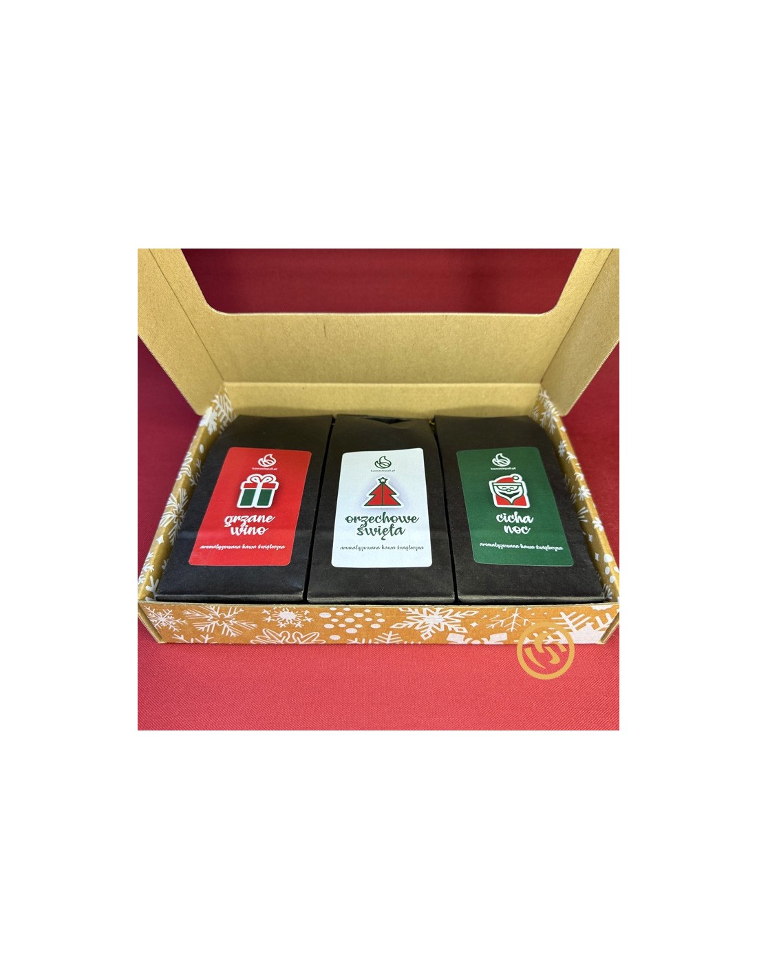 Zestaw kaw Świąteczny Blask to wyjątkowa kompozycja trzech aromatyzowanych kaw, które wprowadzają do domu zapach świąt. W środku znajdują się te same wyjątkowe smaki: Cicha Noc (pomarańcza, cynamon i wanilia), Grzane Wino o korzenno-winnej głębi oraz Orzechowe Święta z orzechowo-pomarańczową nutą – wszystkie stworzone na bazie kolumbijskiej arabiki najwyższej jakości. Utrzymany w świątecznej kolorystyce zestaw prezentuje się elegancko i doskonale sprawdzi się pod choinką. To świetny wybór dla osób, które chcą podarować bliskim coś aromatycznego, ciepłego i wyjątkowego. Świąteczny Blask to kawa, która smakuje jak święta – pełna radości, zapachu przypraw i zimowego uroku.