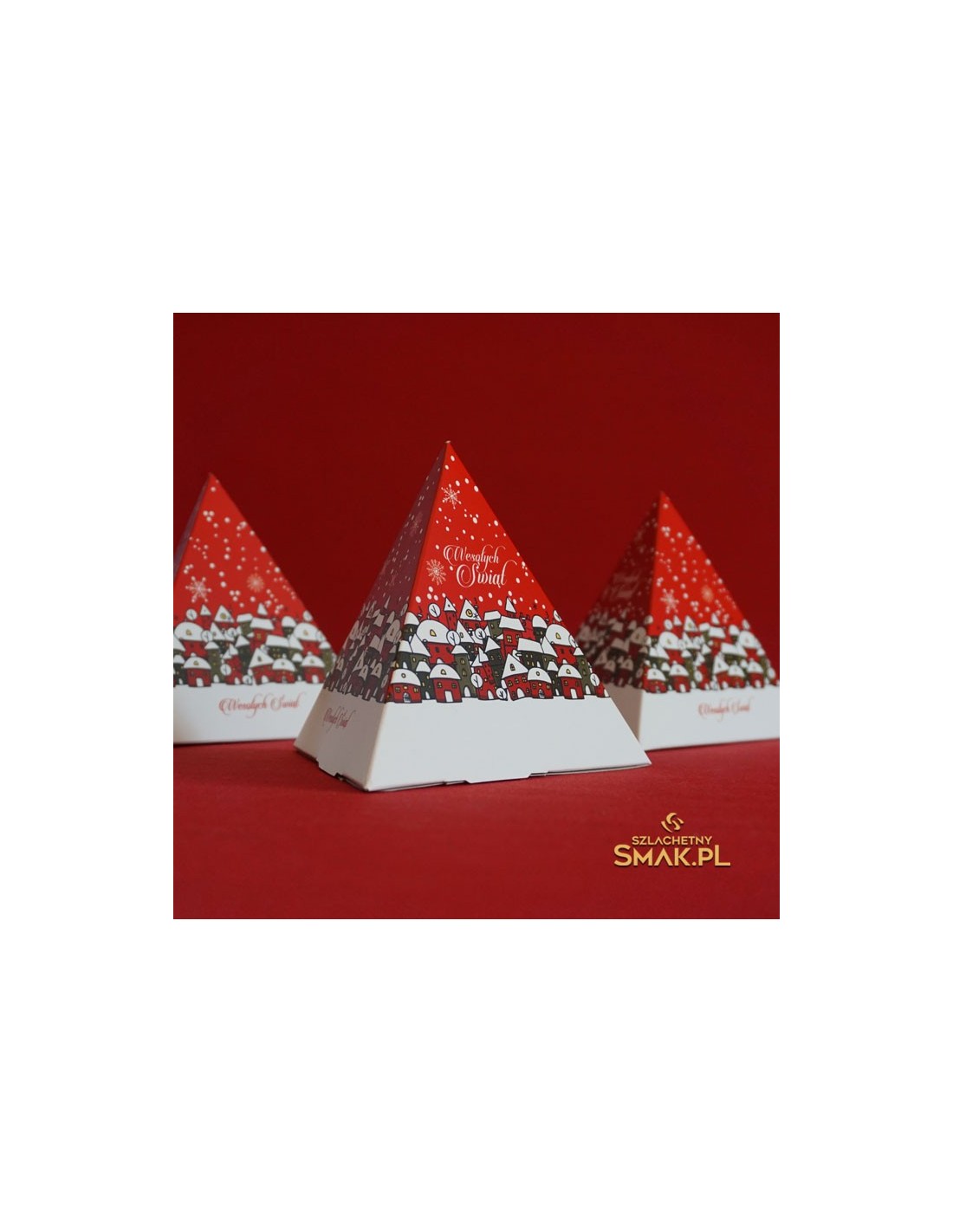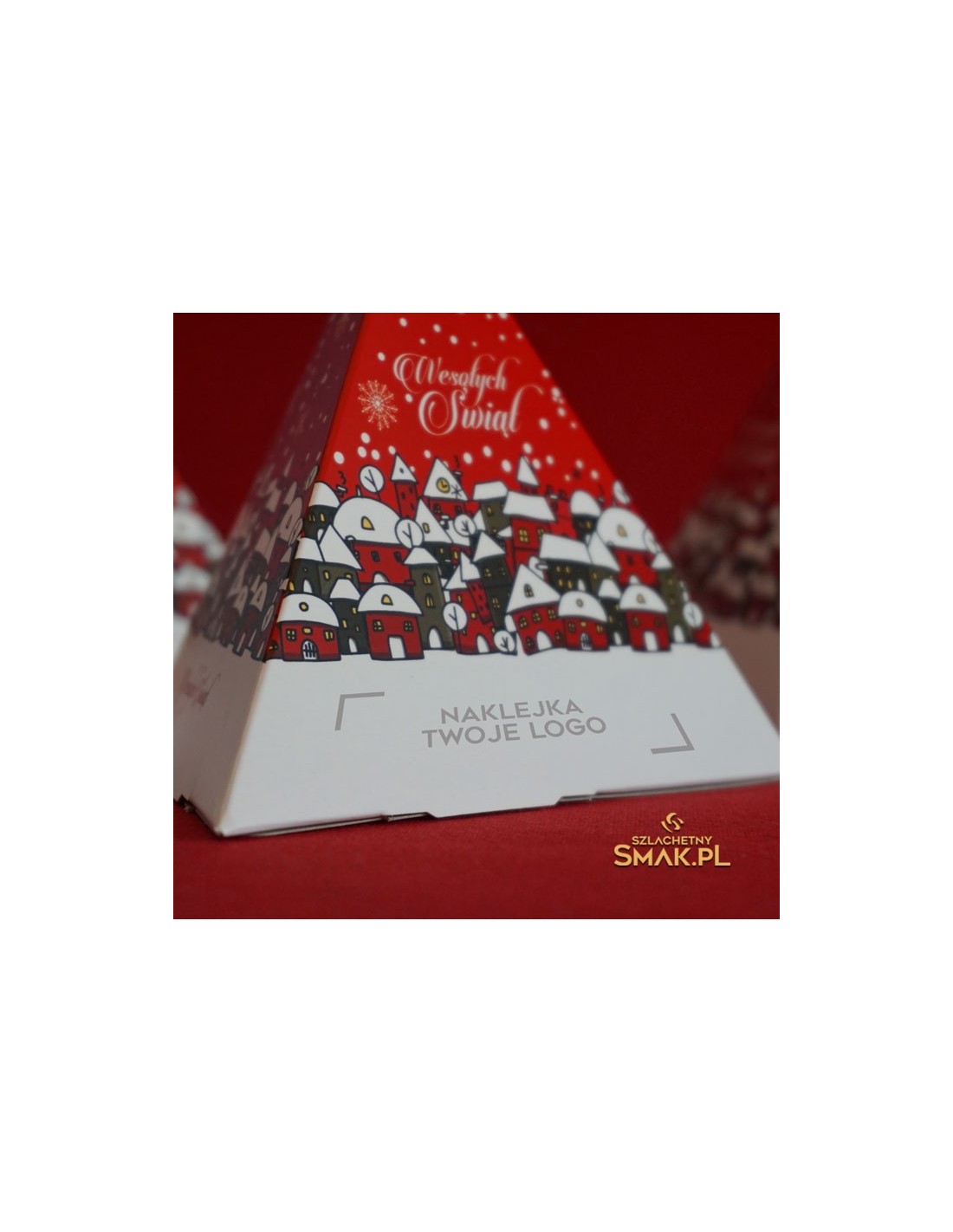 Aromat świąt zamknięty w tekturowej piramidzie. Herbata świąteczna jako idealny upominek (gadżet). Przy większych zamówieniach dowolna grafika i atrakcyjne ceny ! Opakowanie z litej tektury + folia matowa. Nadruk full color. Miejsce na ewentualną personalizowaną naklejkę.