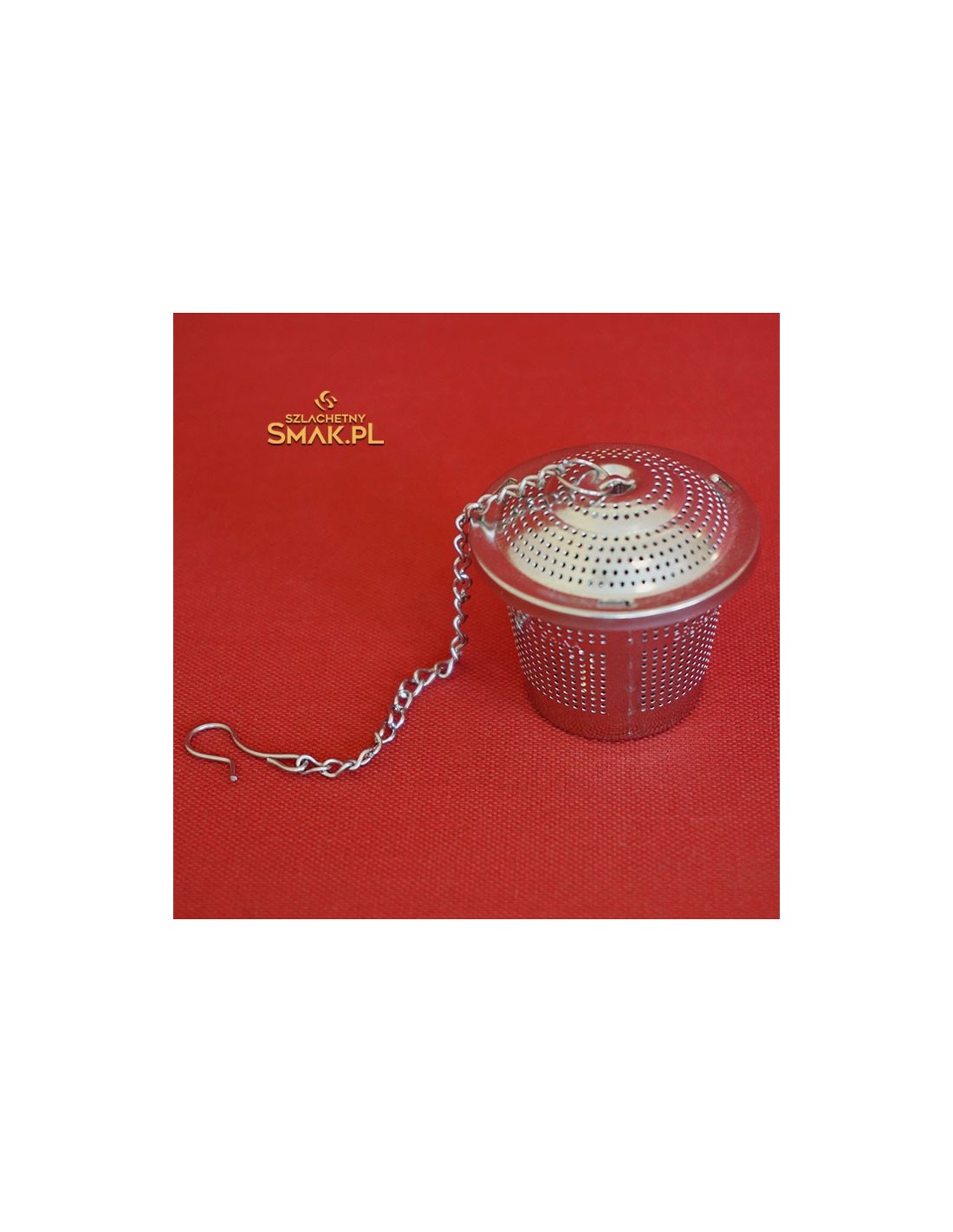 Metalowa zaparzaczka do herbaty z łańcuszkiem.