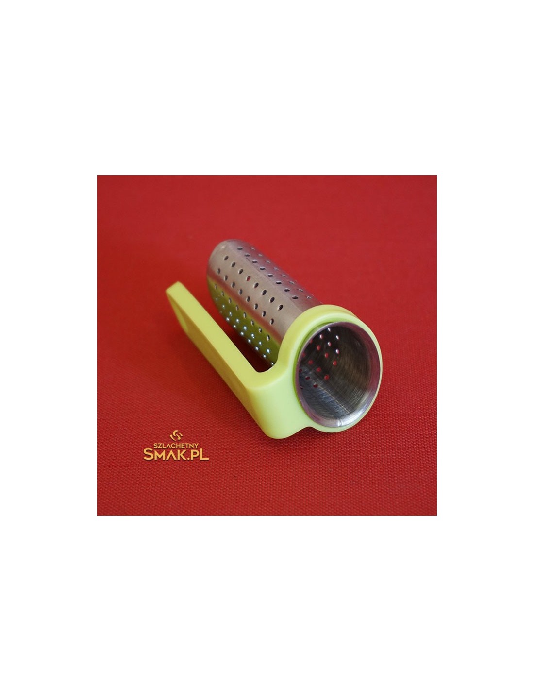 Stalowa zaparzaczka do herbaty z uchwytem z tworzywa.