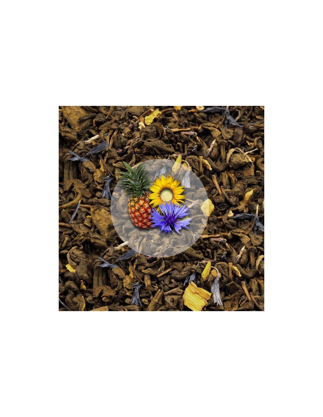 Ananas, słonecznik, bławatek to dodatki do smacznej i aromatycznej Zielonej Herbaty Egzotycznej.