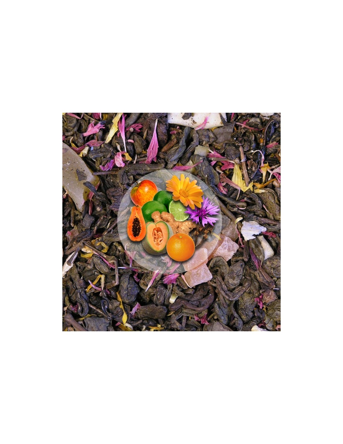 W tych niepozornych, suszonych liściach zielonej herbaty znajdują się substancje, które zapobiegają rozwojowi nowotworów. Również herbata zielona Jesienna Aleja jest przez nas polecana przede wszystkim dlatego, że dodatki są ciekawie dobrane. A oto one: zielona cytryna, jabłko, melon, papaja, imbir kandyzowany, bławatek czerwony, pomarańcza, goździk i nagietek. Gorąca i aromatyczna herbata w te jesienne dni z pewnością "odpali" uśmiech na twojej twarzy.