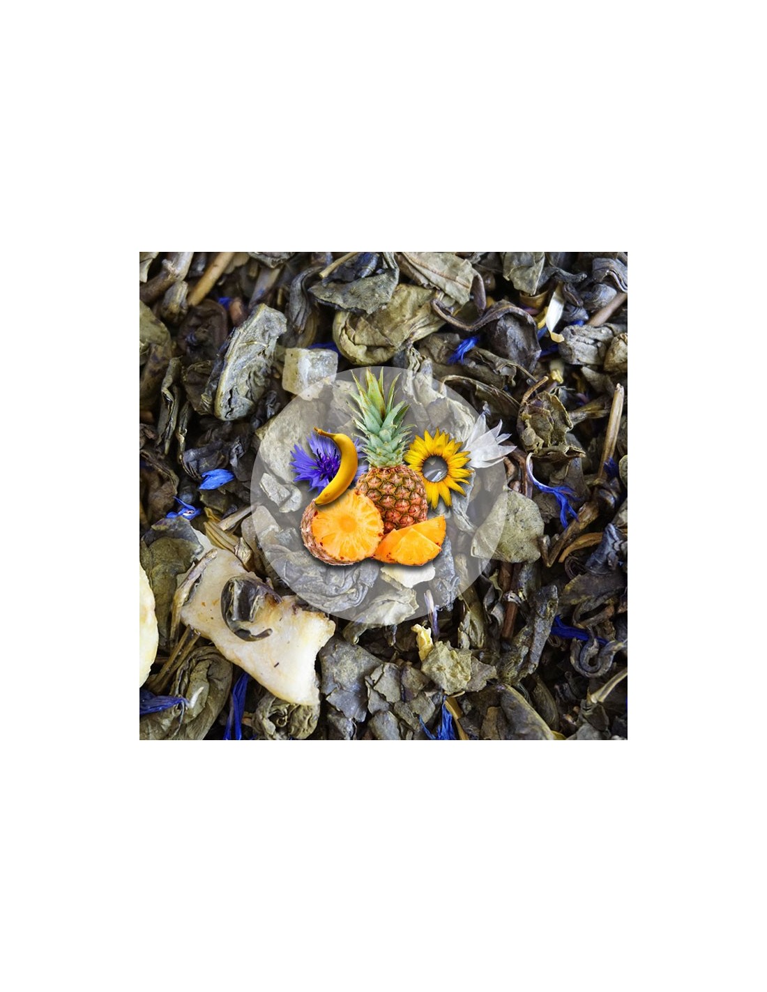 Dlaczego zielona herbata, bo o niej mowa, jest tak lubianym i poszukiwanym napojem? Z pewnością zdecydowały o tym niezwykłe właściwości zielonej herbaty i dodatki które posiada. African Queen to mieszanka między innymi:ananasa, banana, bławatka i słonecznika.